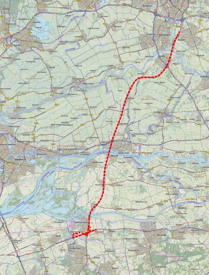 Het tracé ligt grotendeels in het Zuid-Hollandse veengebied. Diep in de bodem van dit veenweidelandschap liggen enkele stroomgordels en voor deze oude riviersystemen geldt dat er vroeg- en laat-prehistorische vindplaatsen te verwachten zijn. Aan de zuidkant van het tracé wordt een deels met veen bedekt dekzandlandschap aangesneden. Daar zijn vindplaatsen uit de midden-steentijd aangetroffen en in het smalle wegtracé is ook een deel van de gracht langs een voormalig middeleeuws Karthuizerklooster onderzocht. Daarnaast is ook onderzoek gedaan bij de brug over de Merwede bij Gorinchem naar stellingen uit de Tweede Wereldoorlog.
