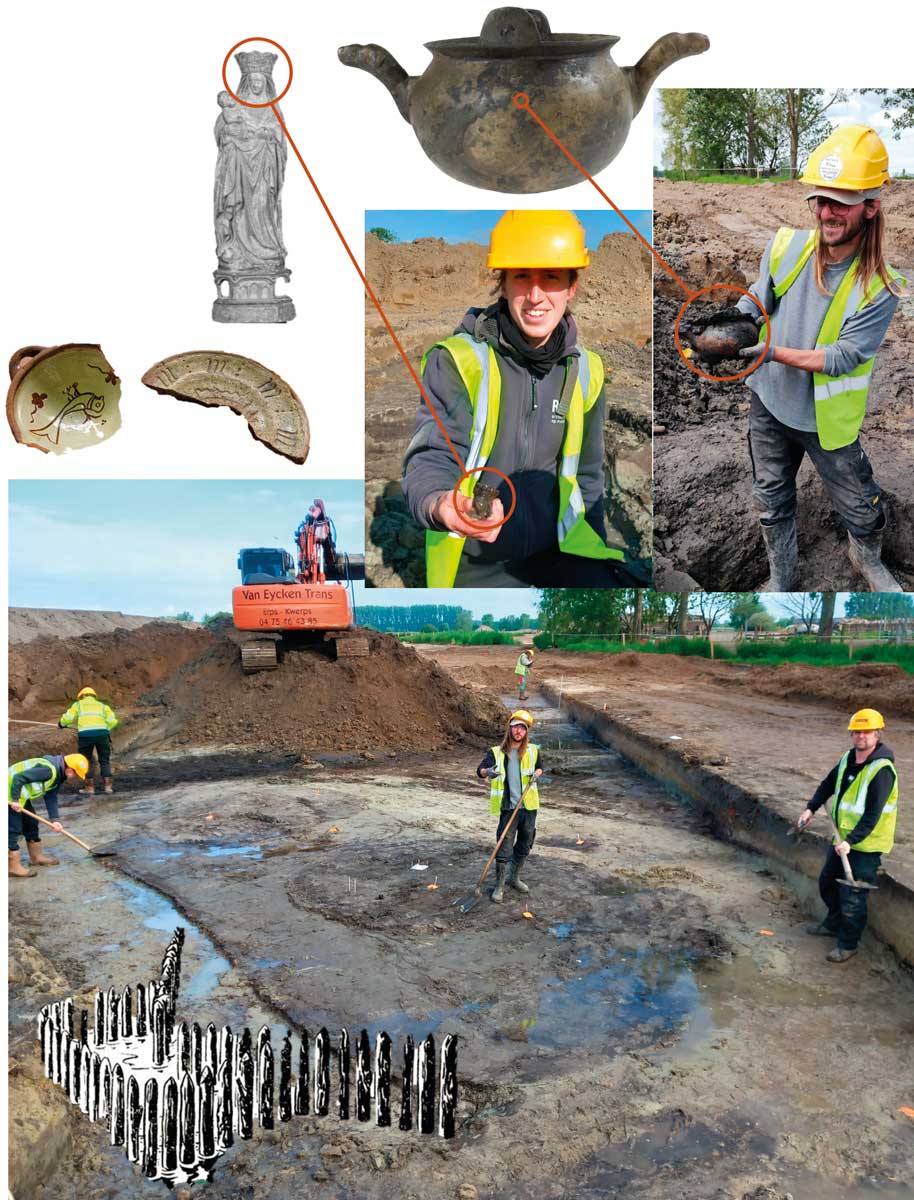 Tussen maart en juli 2023 werkten zo’n 10 tot 25 archeologen op de bouwplaats. RAAP werkte er samen met BAAC Vlaanderen en Monument Vandekerckhove. De archeologen waren georganiseerd in vijf teams, elk met hun eigen taken. Dat varieerde van het lokaliseren van sites direct achter de graafmachines, tot opgraven, inmeten en andere registraties. Ook al is de analyse van de veldgegevens maar net begonnen, enkele bijzondere ontdekkingen zijn al te delen.